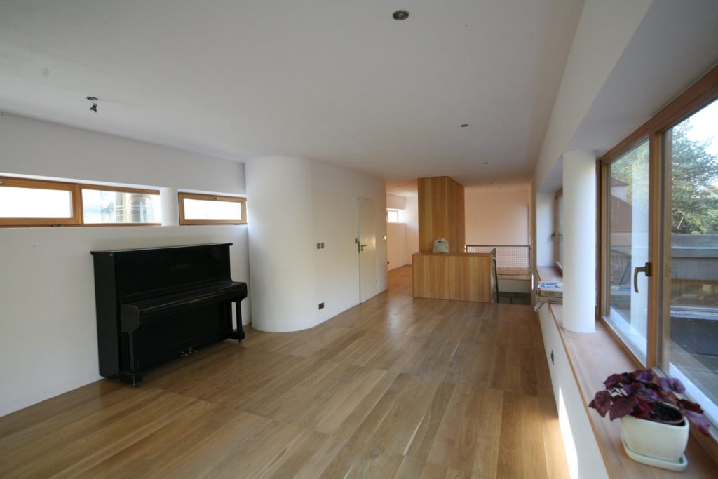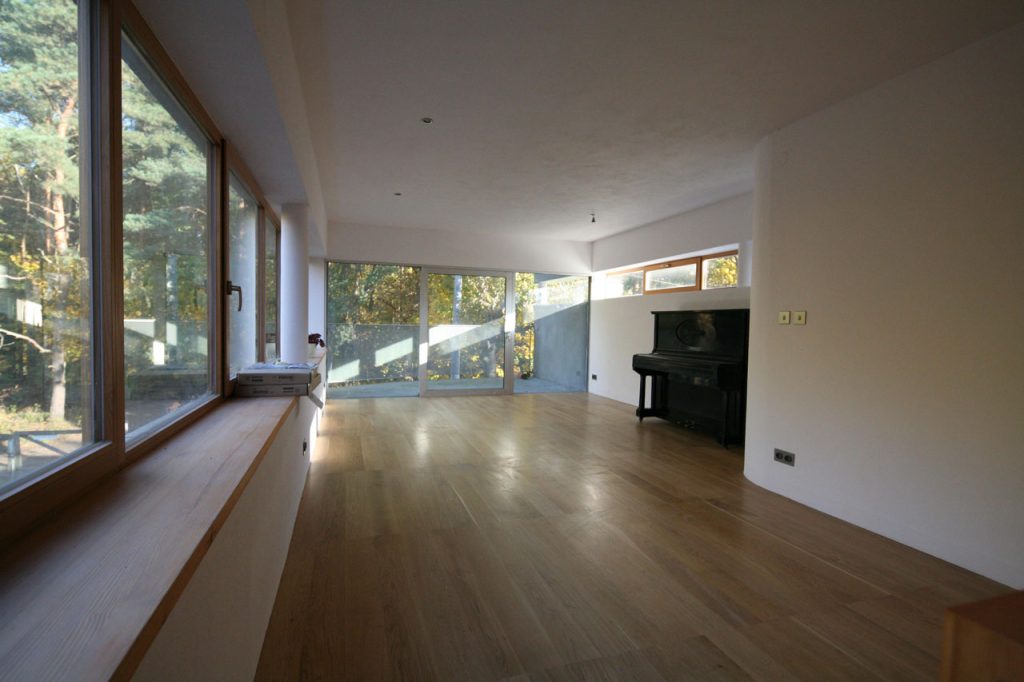 A tranquil wooded area on a small road lined with residential buildings less than half an hour by car from the city center. The plot itself is the last on the road before a lovely dense forest. The focus of the project was to enjoy the view of this wood but gain precious light – as the wood faces north.